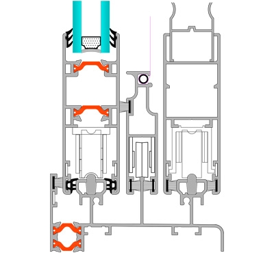 Теплозвукоізоляційна розсувна система, ідеальна для замін. Забезпечує ідеальне ковзання по додатковій анодованій направляючій, яка не вигорає і не зношується. Встановленням спеціального механізму її також можна перетворити на висувну систему.